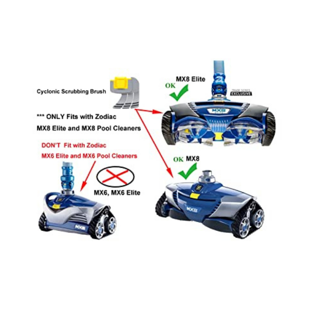 The Zodiac MX8 Elite Cyclonic Scrubbing Brush R0714400 is a replacement set designed specifically for the Zodiac MX8 Elite Pool Cleaner. This kit includes four scrub brushes that are crucial for maintaining the cleanliness and efficiency of your pool cleaner.